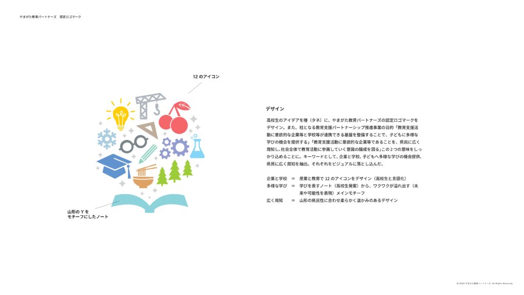 「やまがた教育パートナーズが目標としているように、教育を軸に活動の幅が広がり、地域全体がつながる姿を表現しました。」